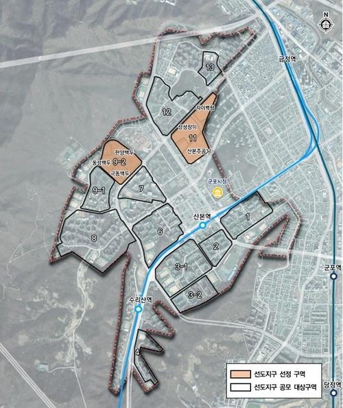 군포시는 평가위원회 검증과 국토교통부 협의를 통하여 1위 11구역 자이백합·삼성장미·산본주공(2,758호), 2위 9-2구역 동성백두·한양백두·극동백두(1,862호)가 선정되었다고 발표했다.