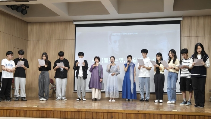 학교 강당에서 2025년 5월 30일 오전 8시 30분에 학생 회장과 부회장의 사회로 시작된 행사는 이 교장과 박 대표의 인사말에 이어, ➀ 윤동주문학상 부문별 시상식, ➁ 시선작가회 세 시인과 학생의 시낭송, ➂ 시선작가회 박정용 대표의 시 강연, ➃ 시인과 학생들이 함께하는 조별 시 창작 및 발표회, ➄ 시낭송가와 학생들이 함께하는 단체 시극(詩劇) 공연의 순서로 오전 행사가 진행되었다. 이 중 윤동주 시인의 시를 시제(詩題)로 삼아 총 9개 조에 배속된 다섯 학생이 30분 동안의 협업으로 창작시를 완성한 뒤 짧은 시극 형태로 가진 발표회와 강여정 시인이 기획 연출하여 10여 명 학생을 무대에 출연시킨 ‘별 헤는 밤, 그 길 위에’ 시극은 큰 감동을 자아내었다.