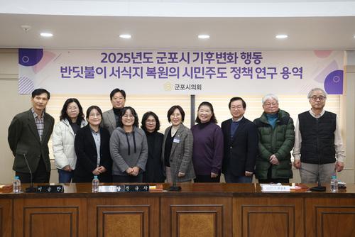 2025 군포시 기후변화 행동 반딧불이 서식지 복원의 시민주도 정책연구 최종보고회속달동 일대 '반딧불이 마을'을 조성하자2025년 올 한해 군포시의회 지원사업으로 진행해온 「반딧불이 서식지 복원의 시민주도 정책연구 최종보고회」가 (사)자연과함께하는사람들(이하 자함사, 대표 이금순) 주관으로 2025년 11월 26일 오후 군포시의회 2층 문화강좌실에서 열렸다.