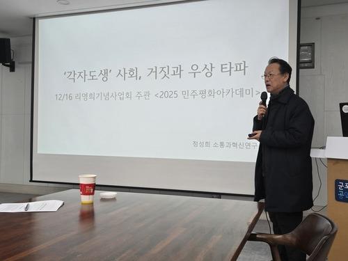 각자도생사회, 거짓과 우상 타파리영희기념사업회 「2025 민주평화아카데미」 정성희 소통과혁신연구소 소장 강좌리영희기념사업회(대표 김동민)가 주최하는 올해 마지막 「2025 민주평화아카데미」가 12월 16일 저녁 군포시공익활동지원센터에서 열렸다.