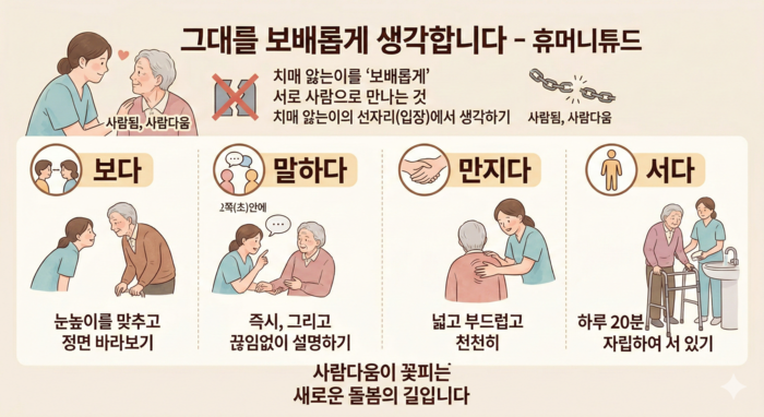 후머니튜드는 돌봄의 새로운 길입니다. 우리 일터에도 널리 퍼져 사람다움이 꽃피길 빕니다.