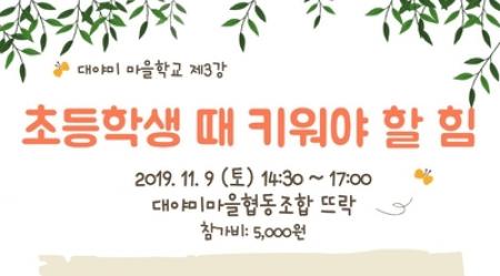 ▲ 대야미마을협동조합은 오는 11월 9일 오후 2시30분부터 '초등학생 때 키워야 할 힘'을 주제로 이영근 초등토론연구회 회장을 초청해 대야미 마을학교 3강을 연다. © 군포시민신문
