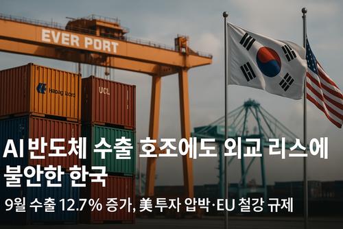 한국 수출이 9월 들어 1년 반 만에 두 자릿수 증가율을 기록하며 경기 회복 기대를 키우고 있다. 그러나 미국의 투자 압박과 유럽연합(EU)의 철강 수입규제 강화 등 대외 불확실성이 겹치면서, ‘AI 호황’에 기댄 수출 성장세가 불안한 균형 위에 놓였다는 분석이 제기된다.