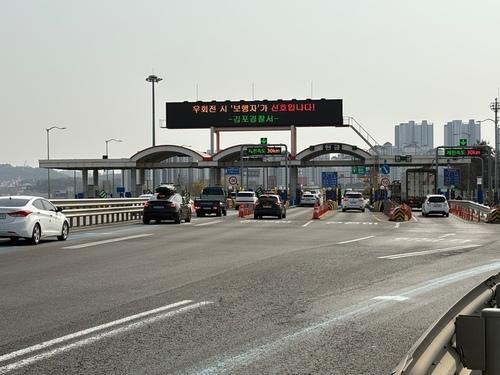 5. 환경, 도시, 교통, 건설 분야 ▲ 일산대교 통행료 50% 지원 1월 1일부터 경기도가 일산대교 요금소를 통과하는 모든 차량의 통행료의 50%를 지원한다. 이에따라 1종은 1,200원에서 600원으로, 2·3종은 1,800원에서 900원으로, 4·5종은 2,400원에서 1,200원으로, 6종은 600원에서 300원으로 통행료가 할인된다.